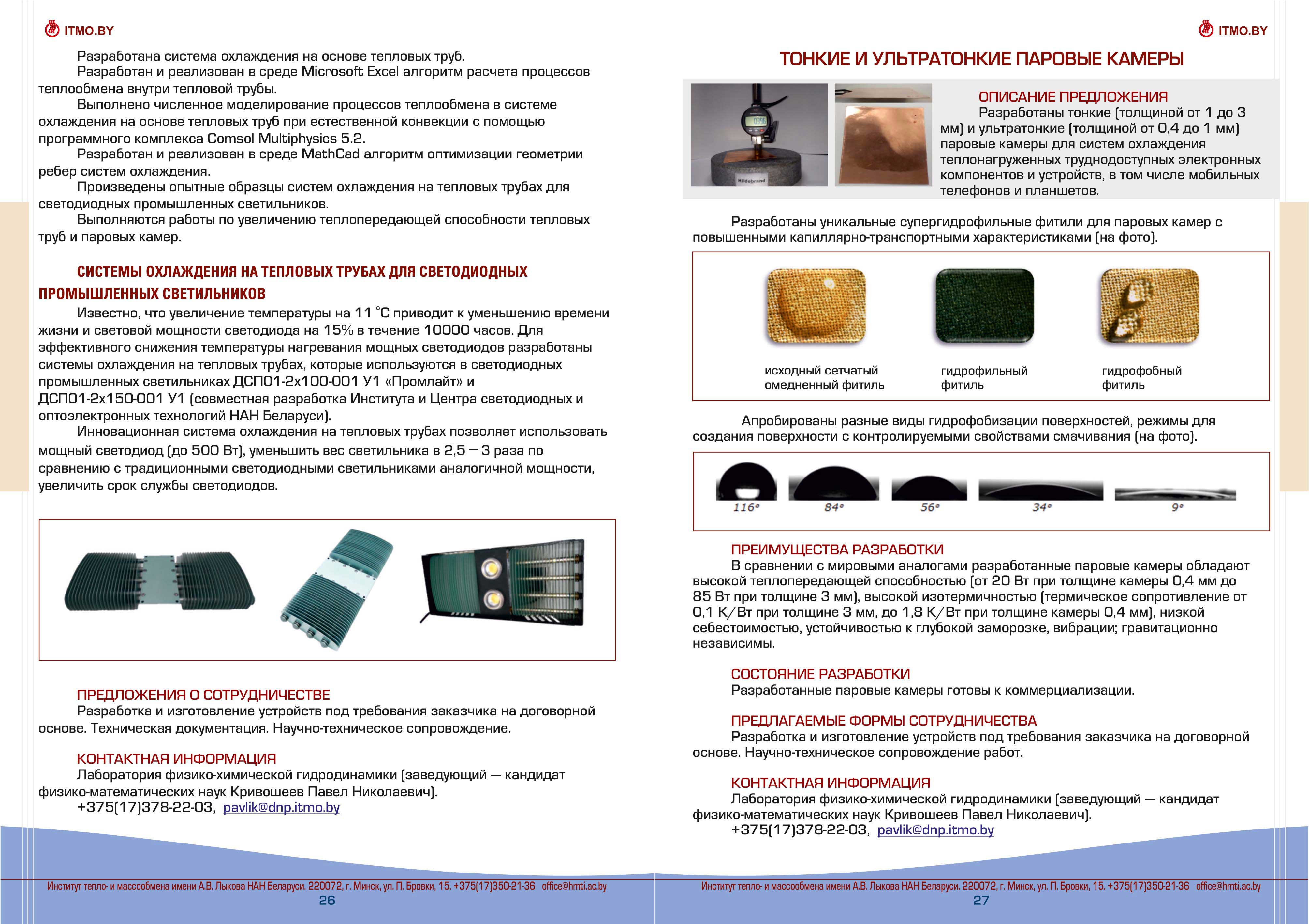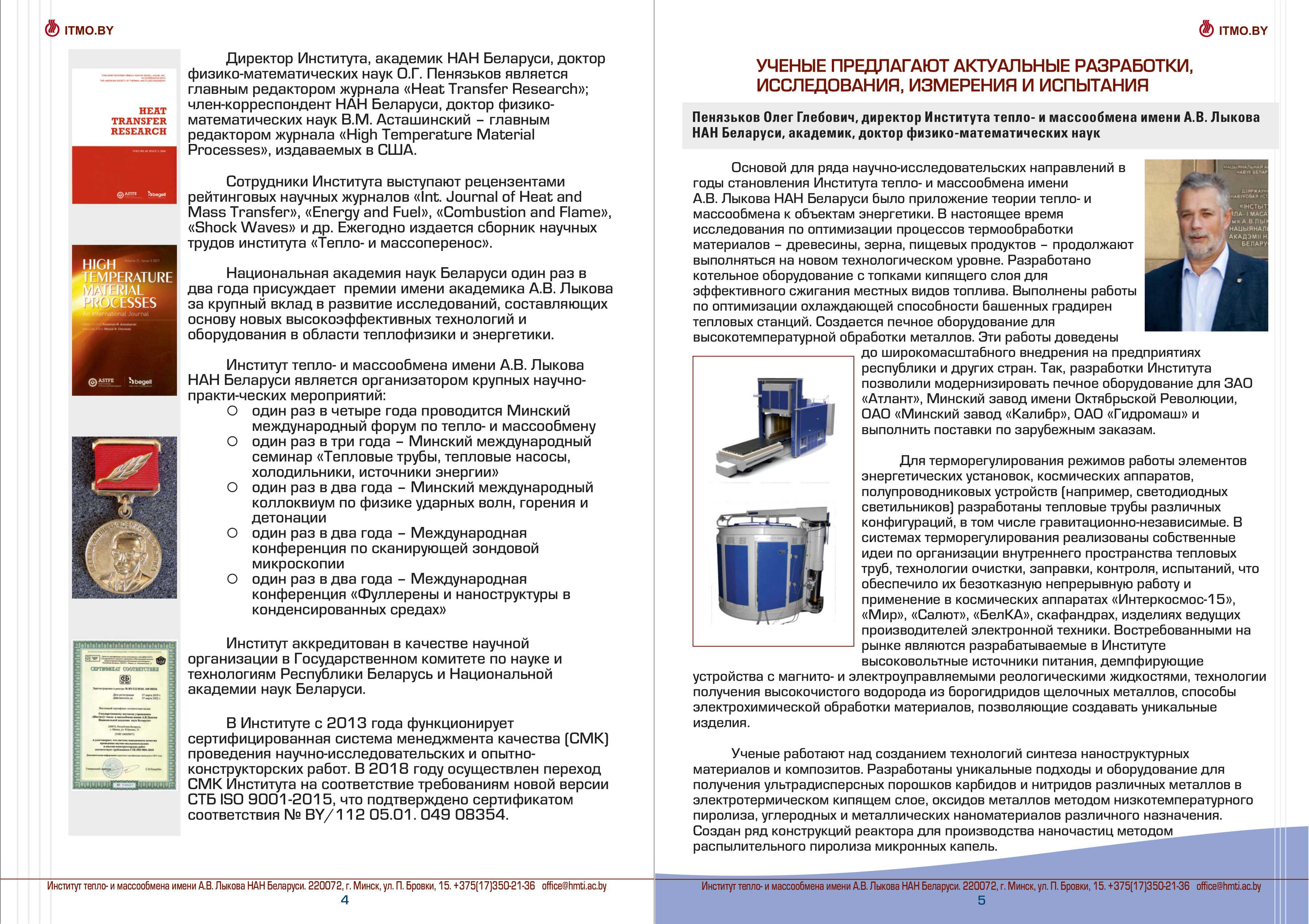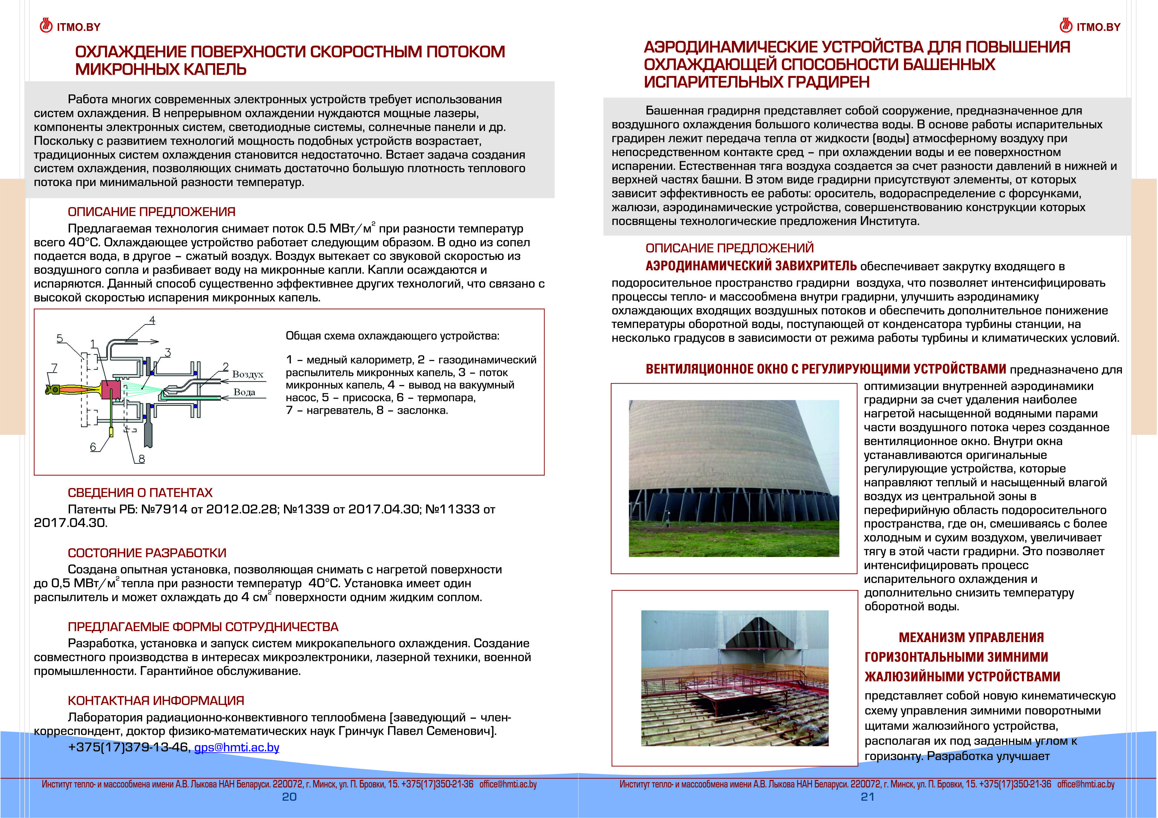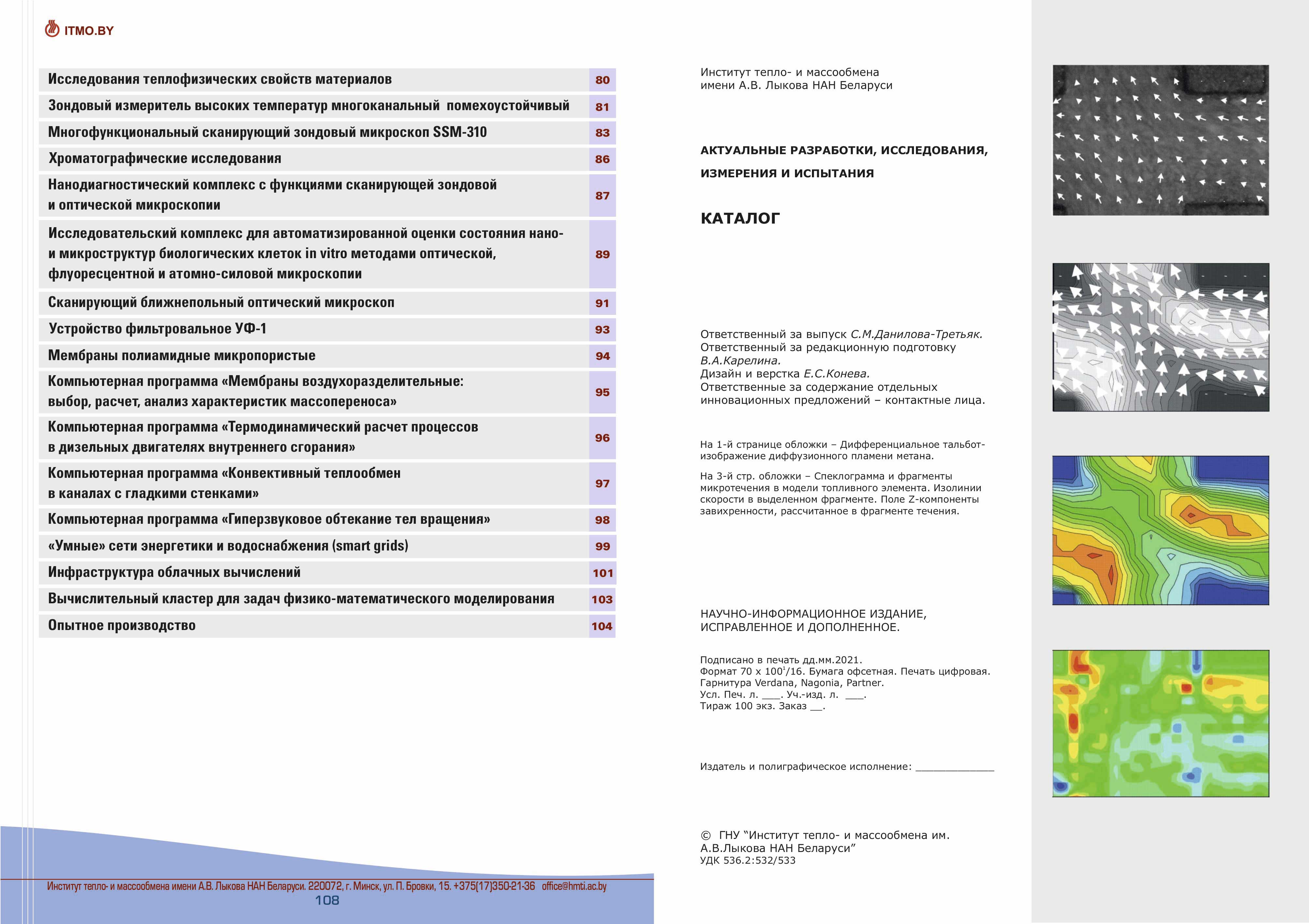 Каталог разработок, исследовний и испытаний Института тепло- и массообмена им. А.В. Лыкова Национальной академии наук Беларуси доступен для скачивания ниже: