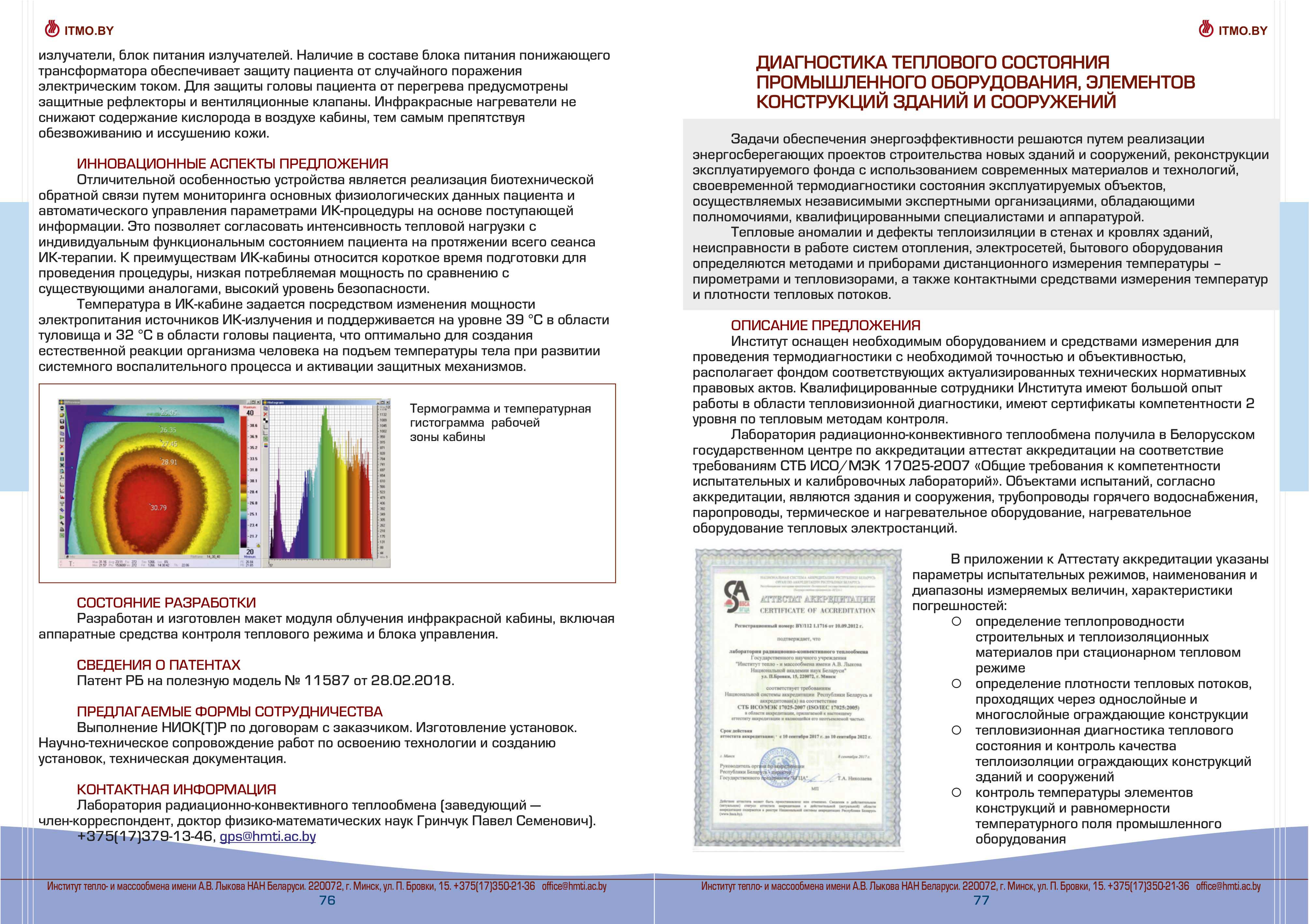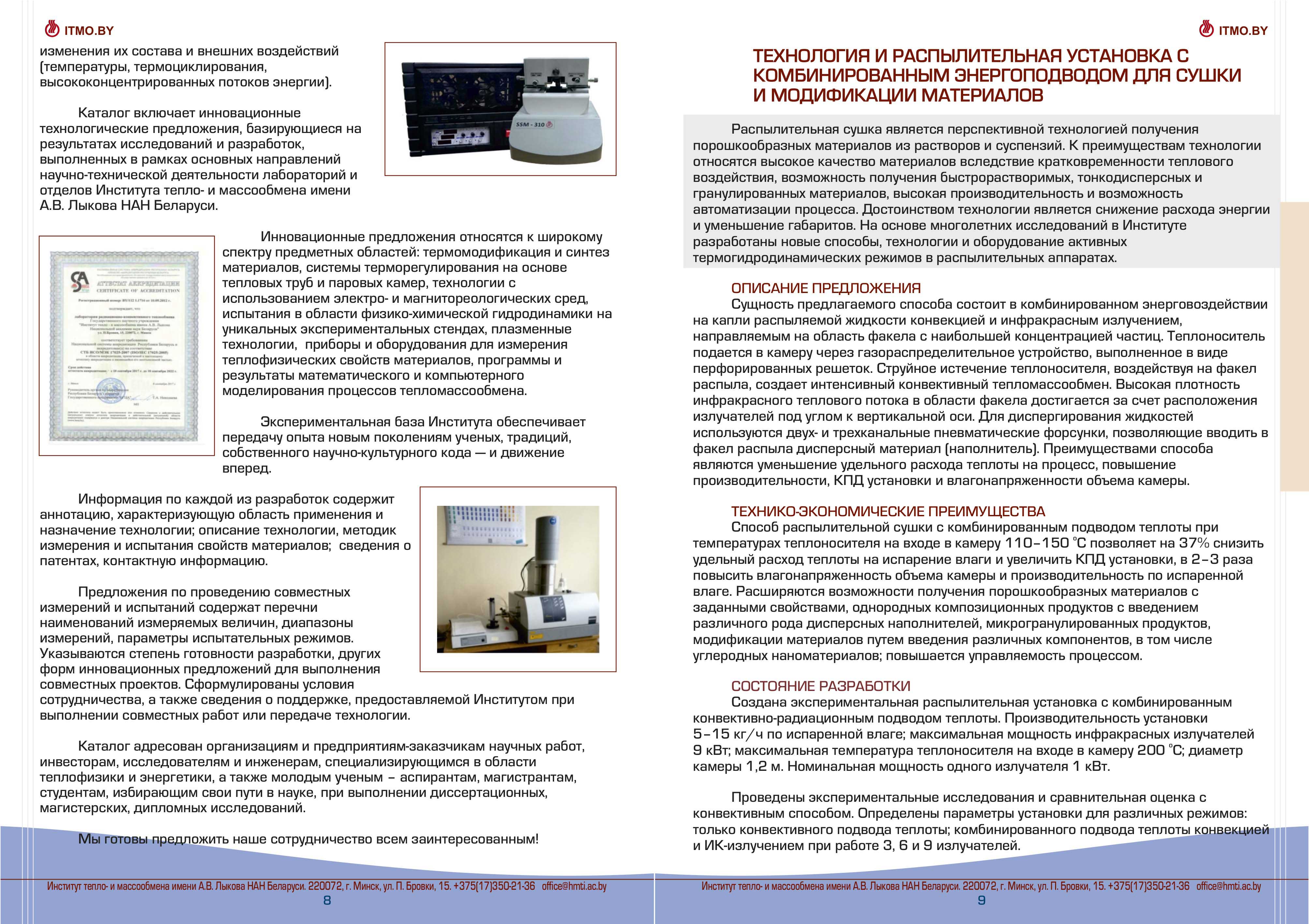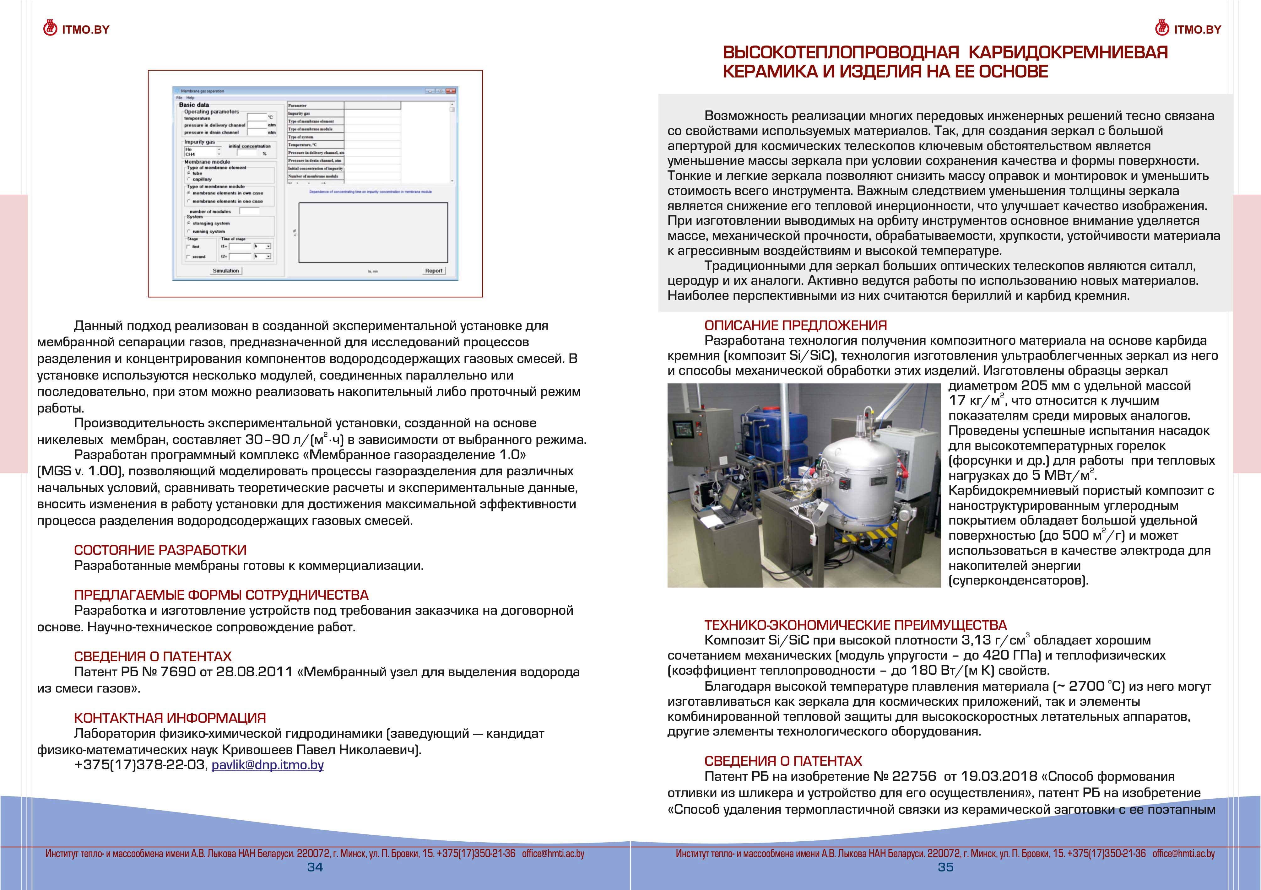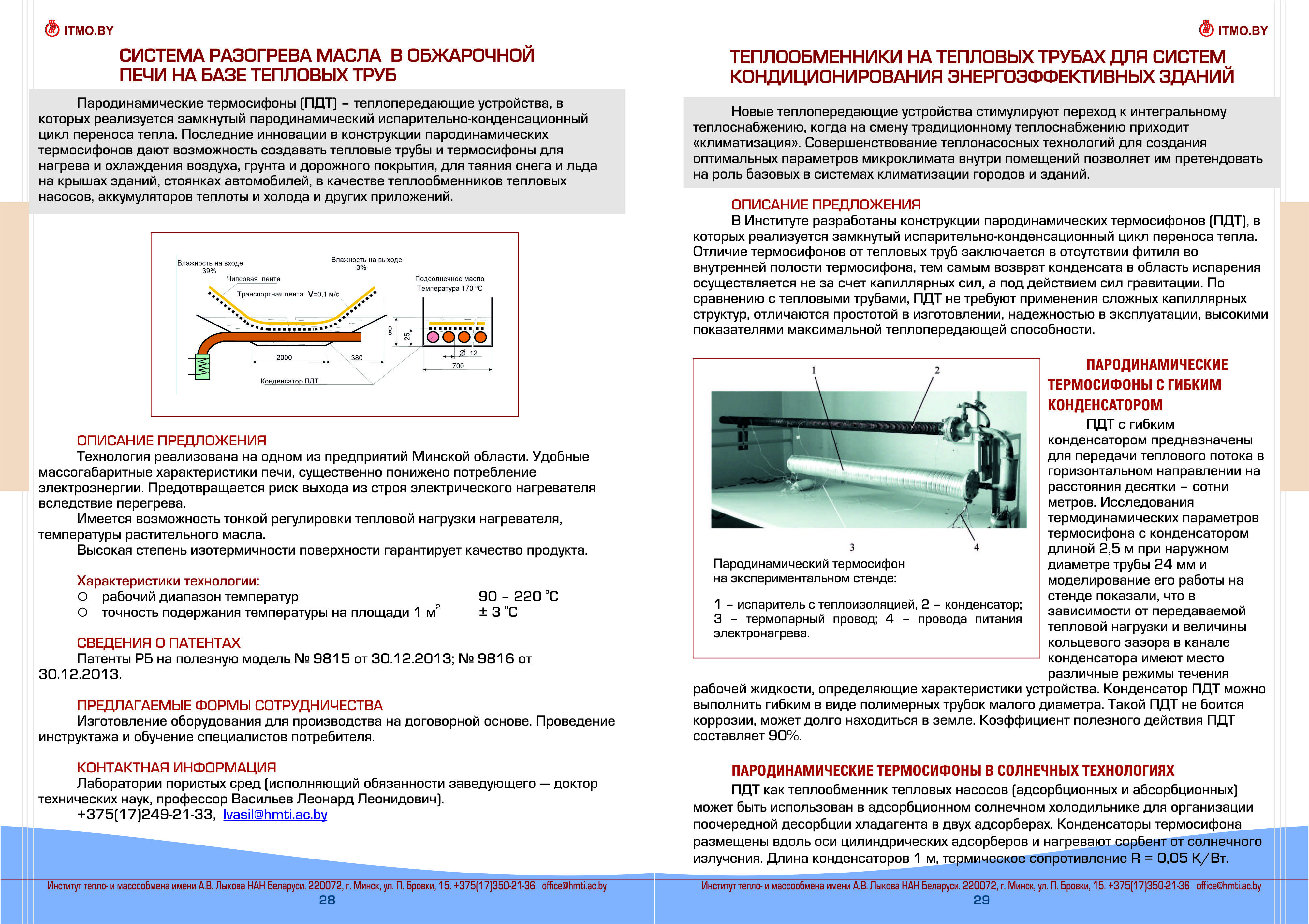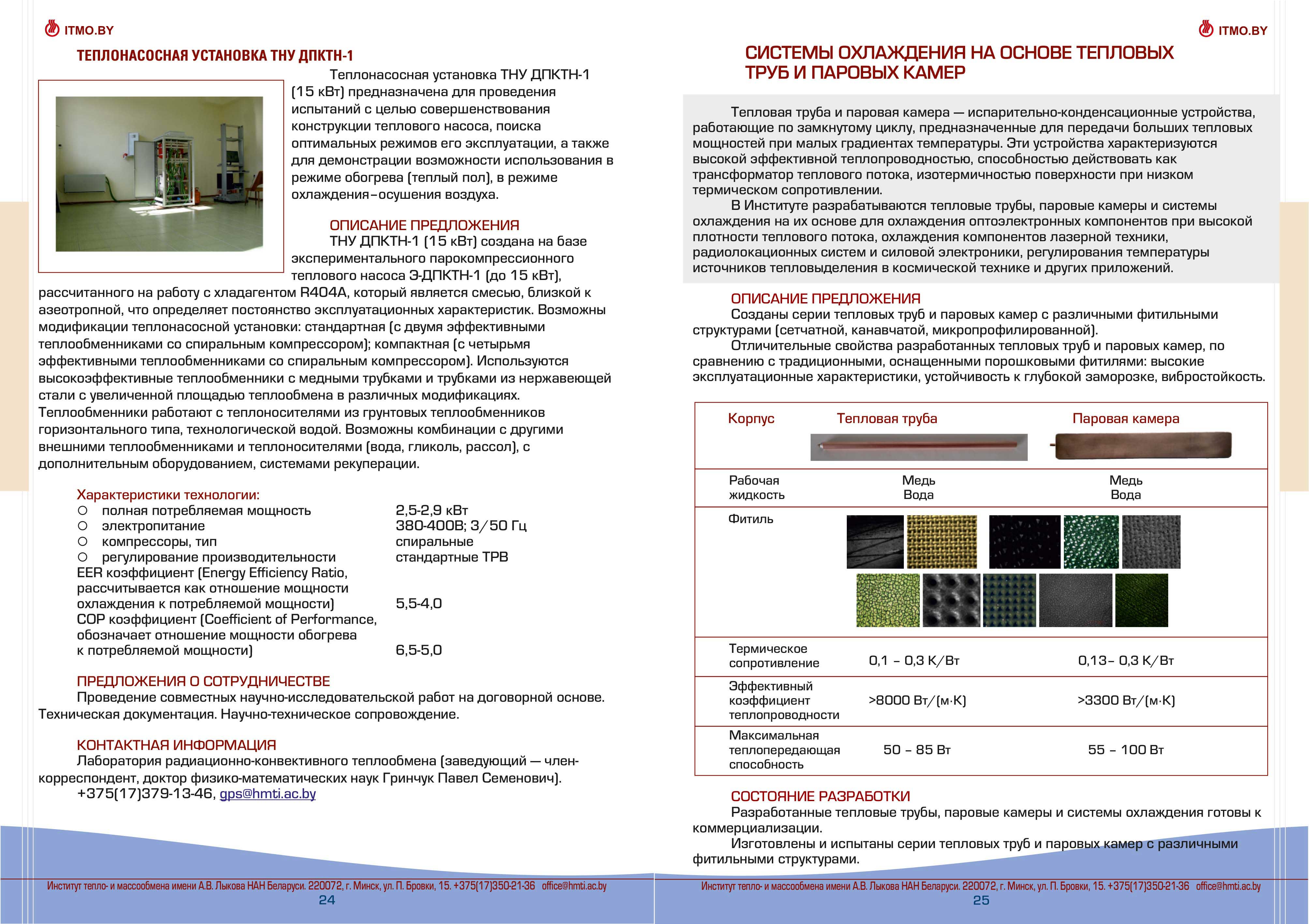 Каталог разработок, исследовний и испытаний Института тепло- и массообмена им. А.В. Лыкова Национальной академии наук Беларуси доступен для скачивания ниже: