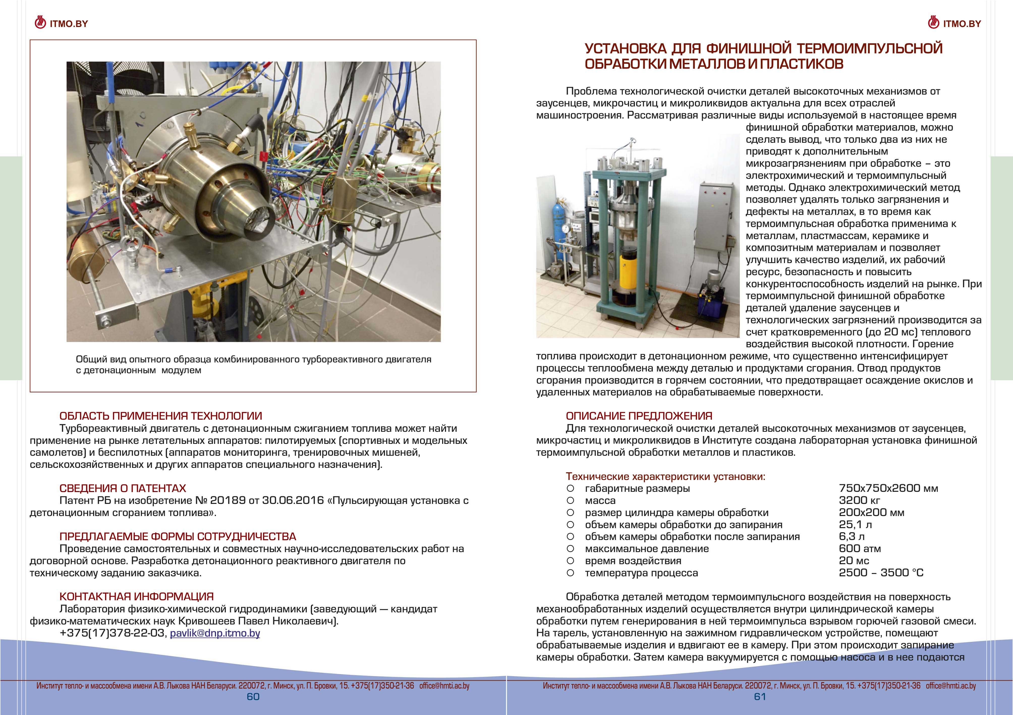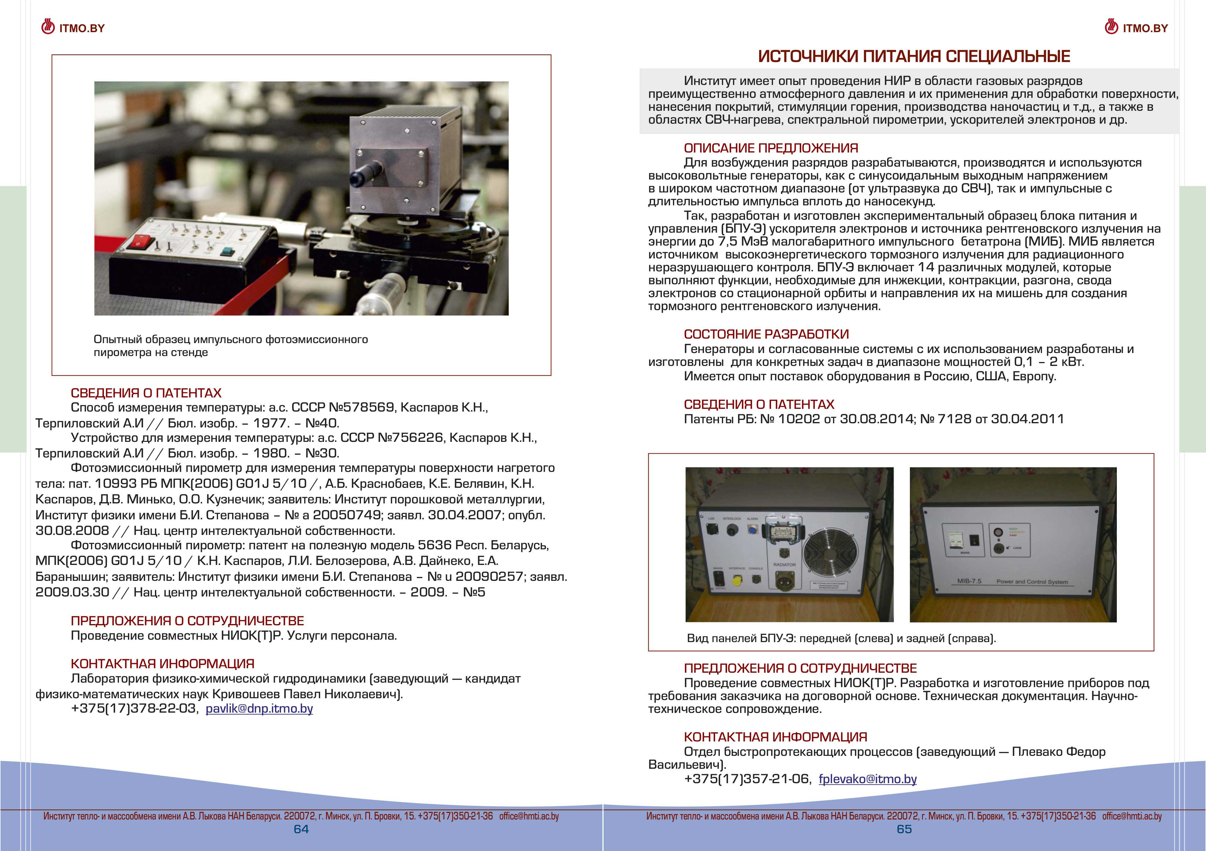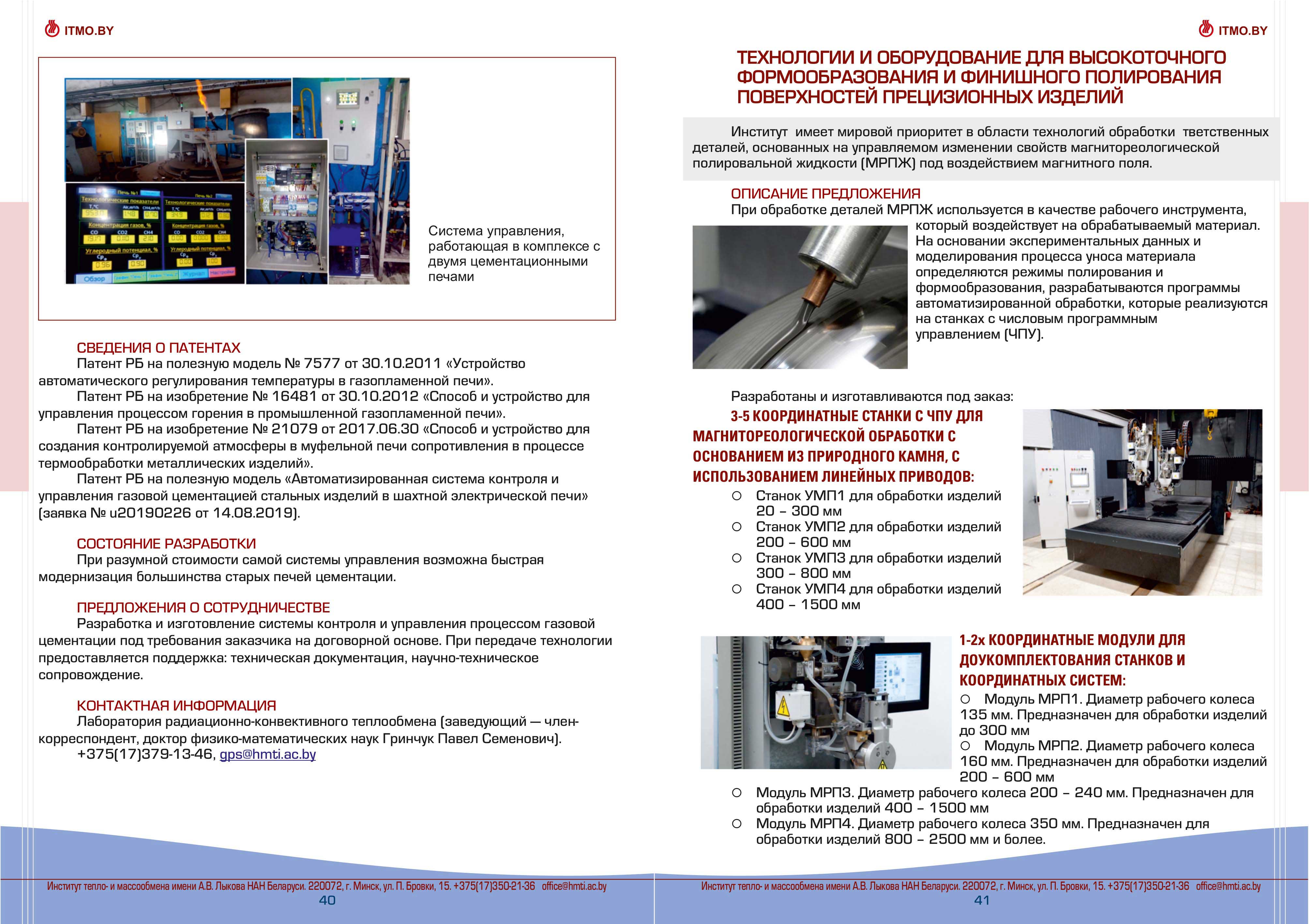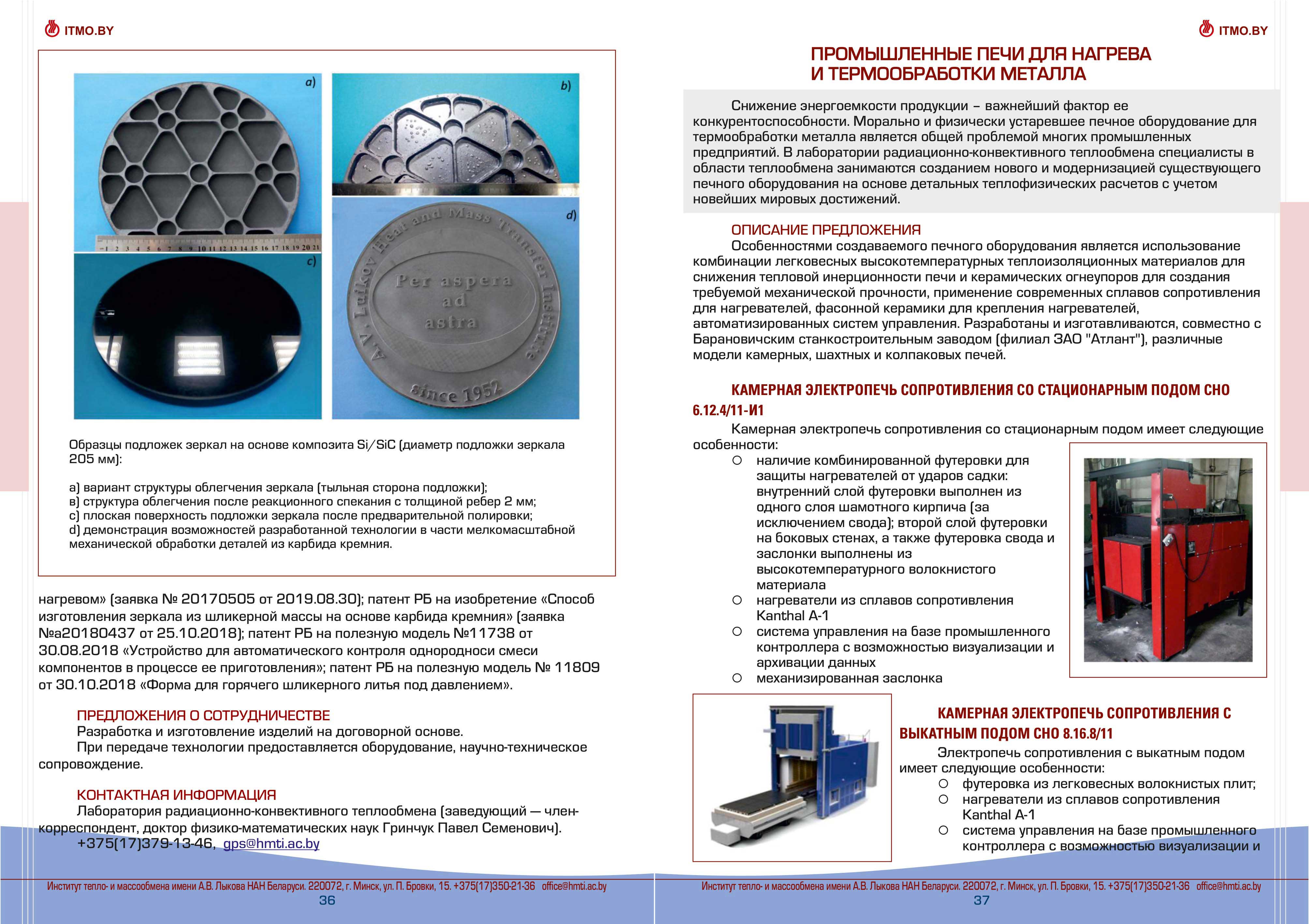 Каталог разработок, исследовний и испытаний Института тепло- и массообмена им. А.В. Лыкова Национальной академии наук Беларуси доступен для скачивания ниже: