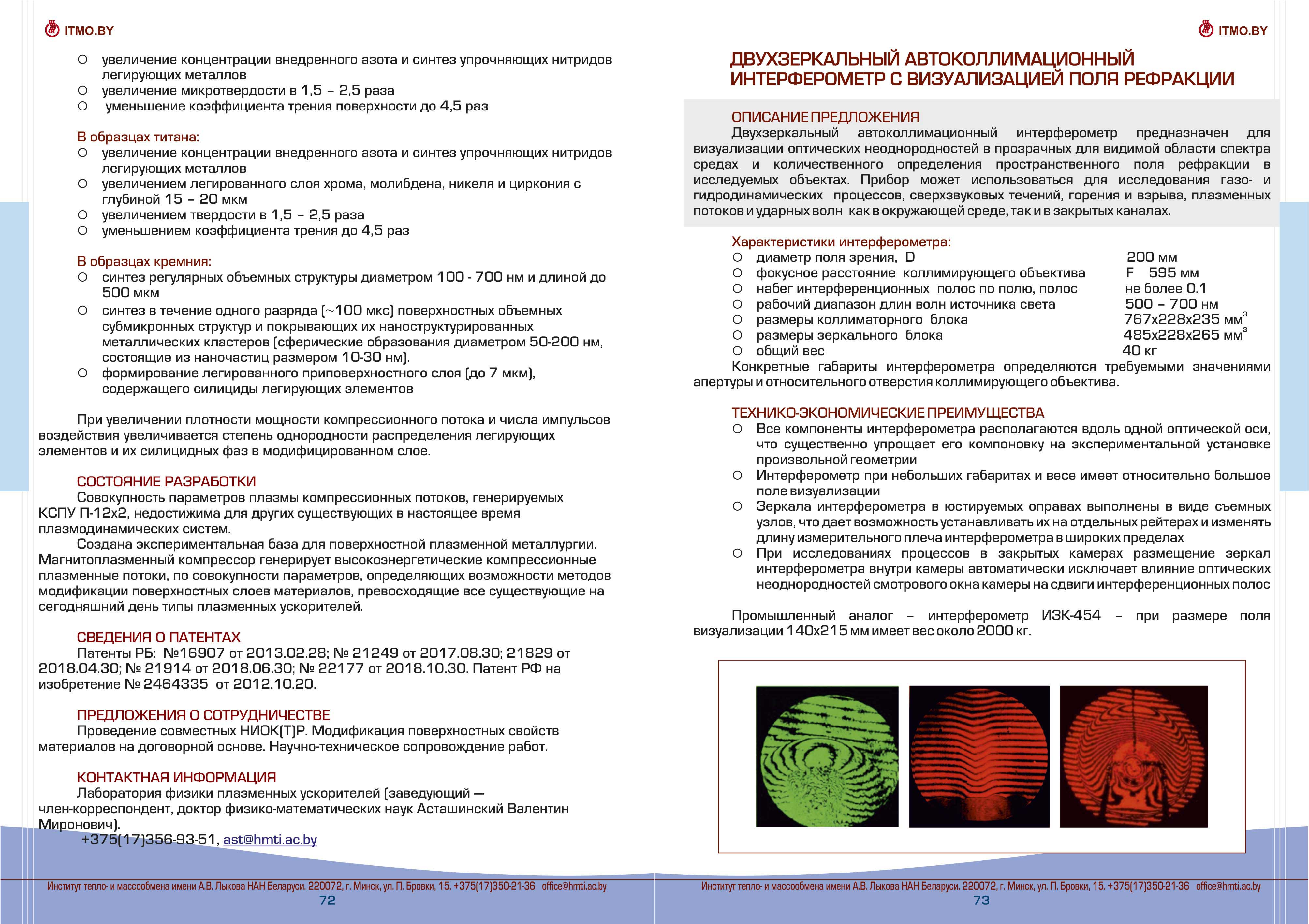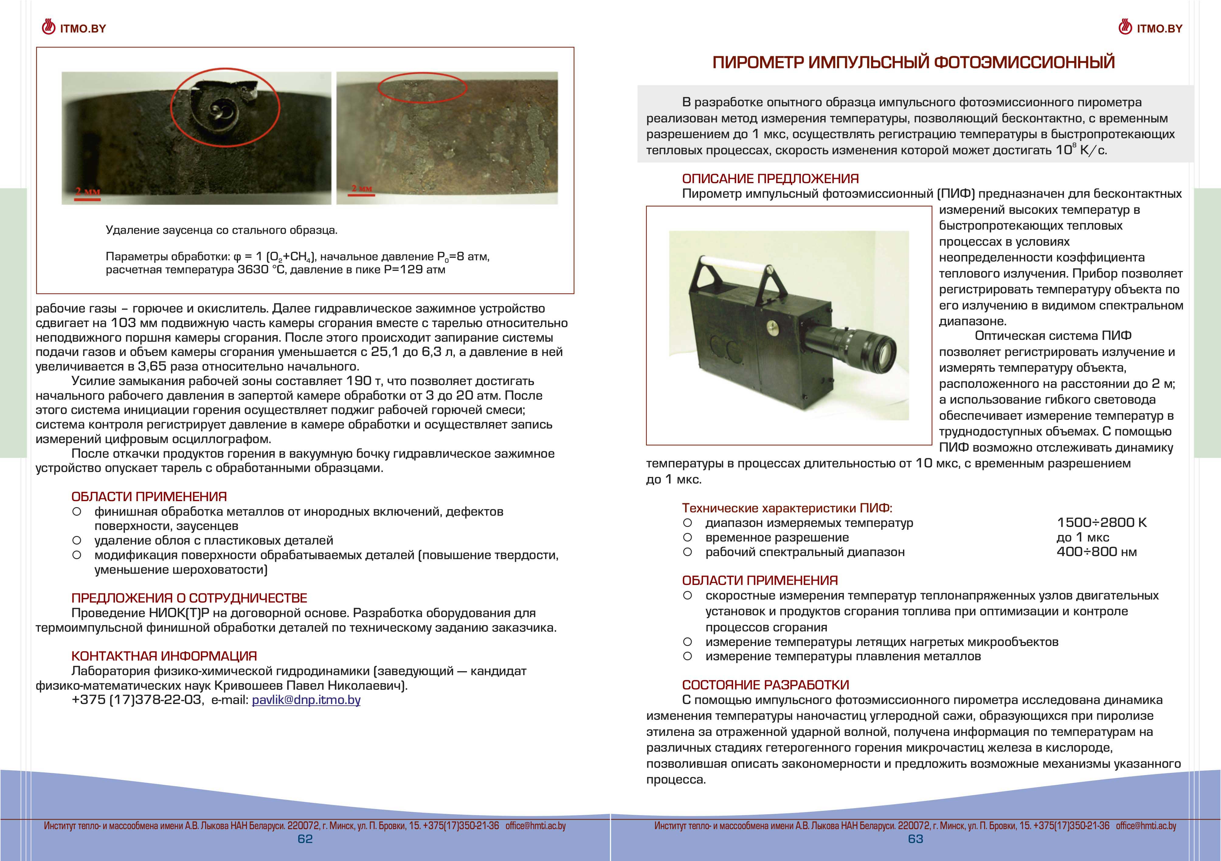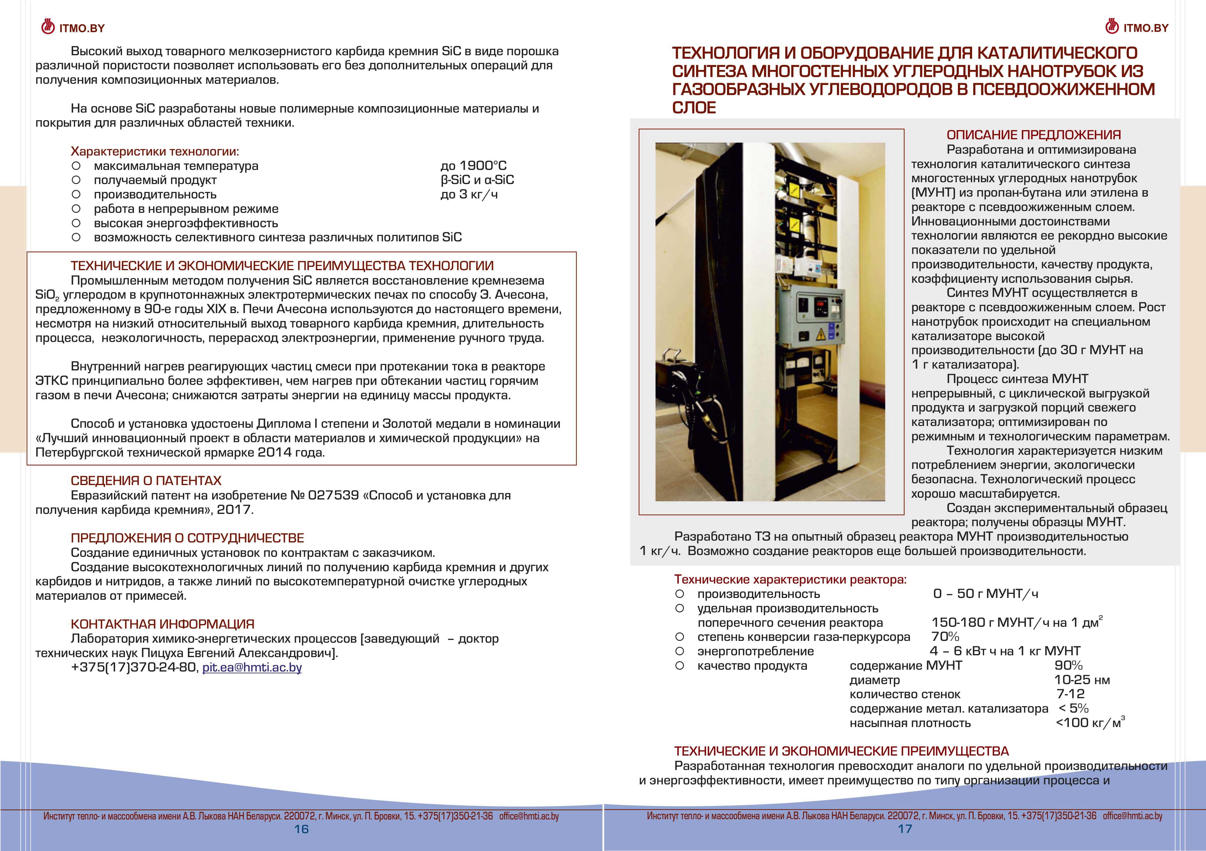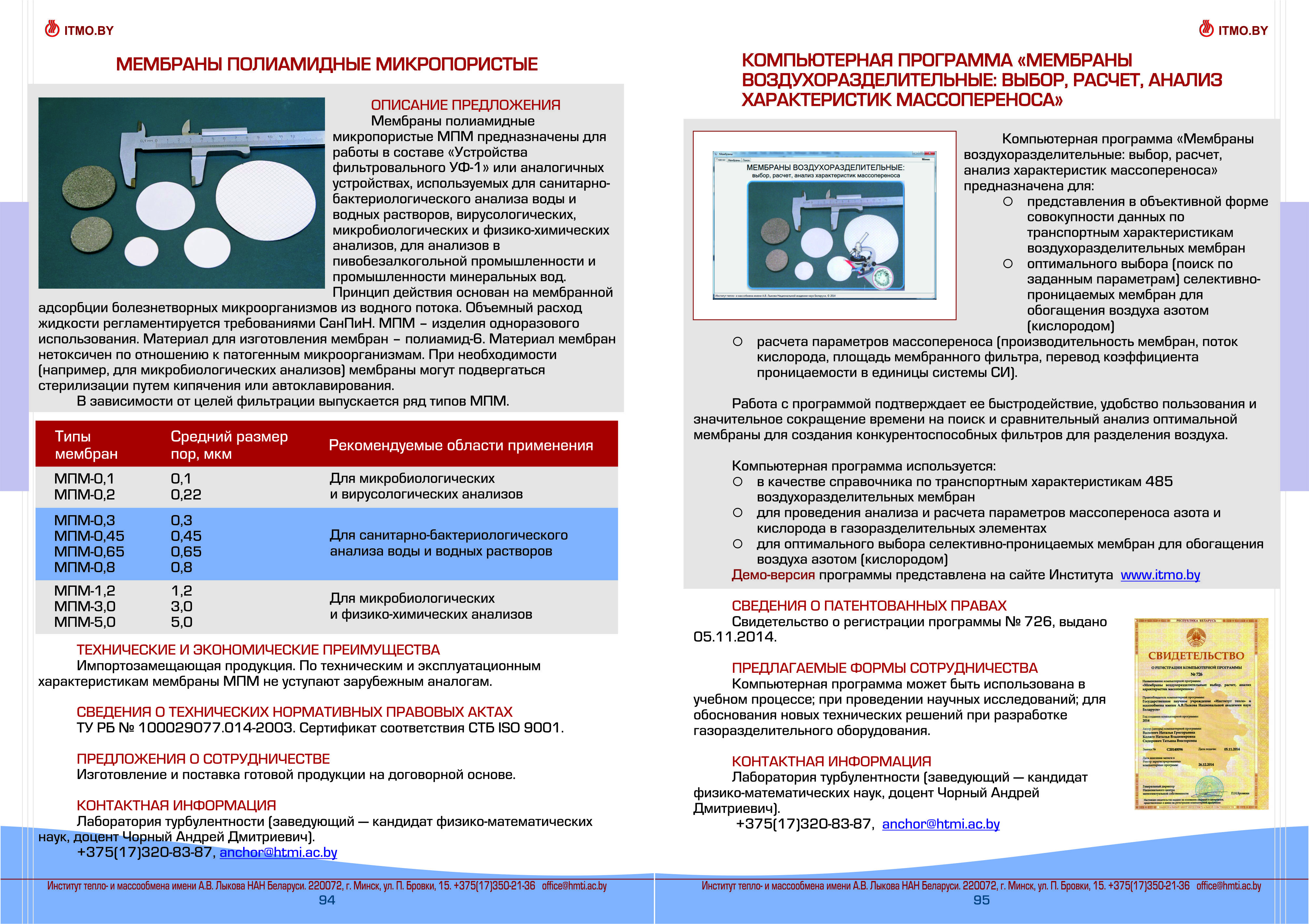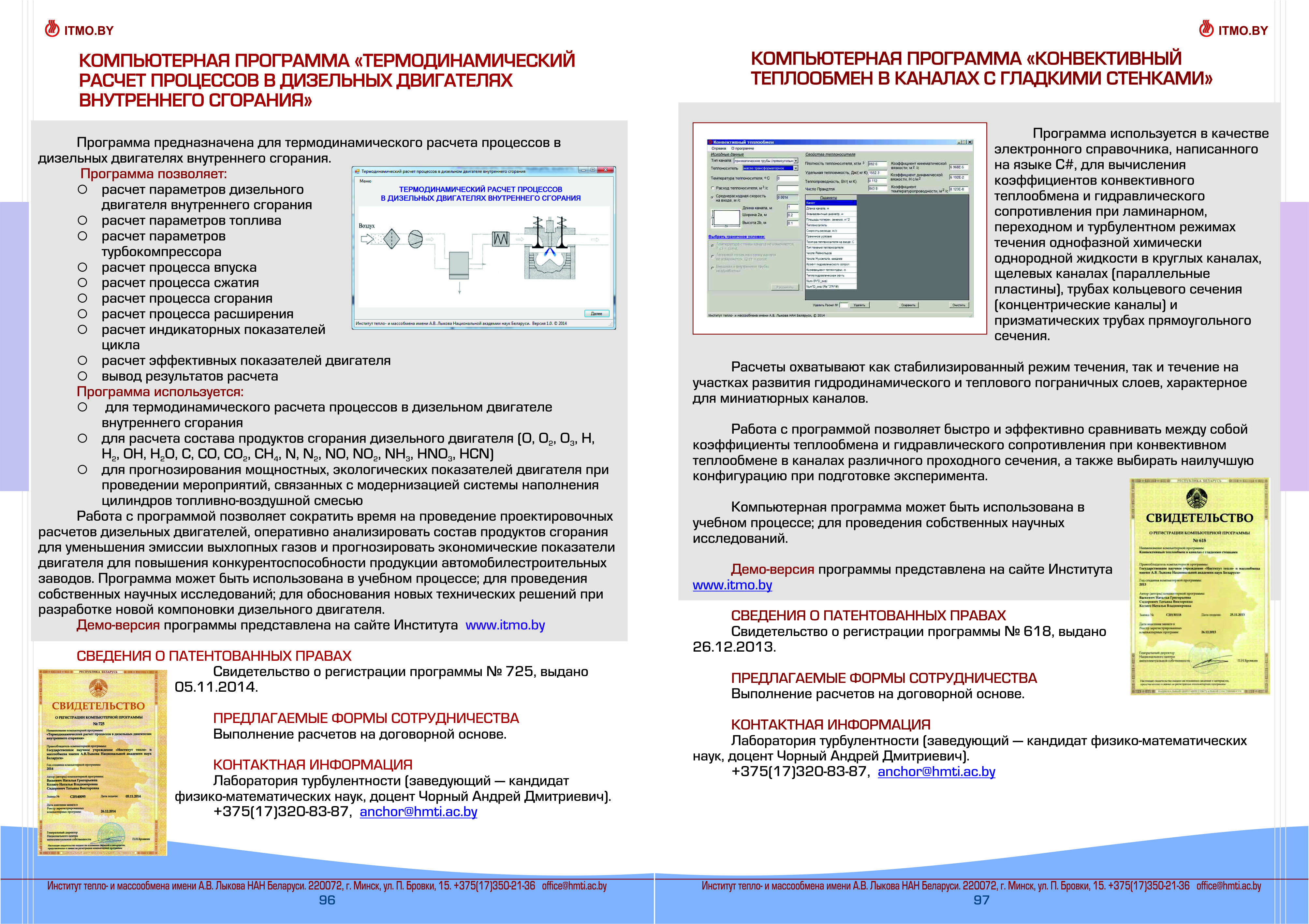 Каталог разработок, исследовний и испытаний Института тепло- и массообмена им. А.В. Лыкова Национальной академии наук Беларуси доступен для скачивания ниже: