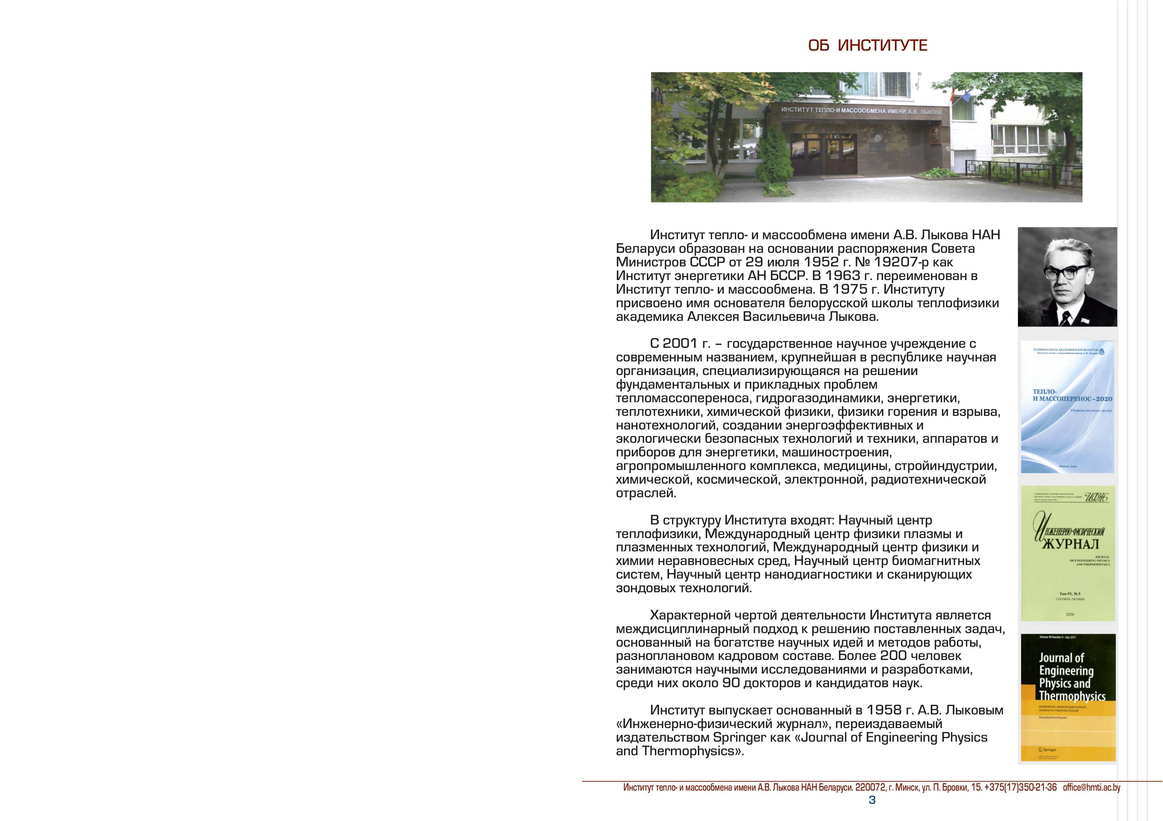 ИНСТИТУТ ТЕПЛО- И МАССООБМЕНА ИМЕНИ А.В. ЛЫКОВА